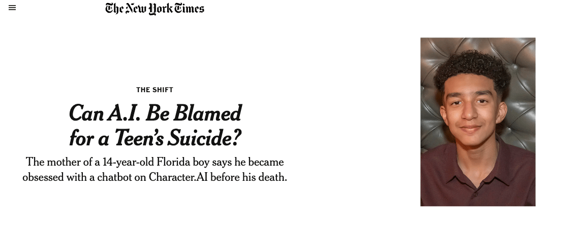 In February 2024, a 14-year-old boy named Sewell Setzer III took his own life in Florida. He wasn't bullied at school. He wasn't on drugs. He was in love... with a chatbot.