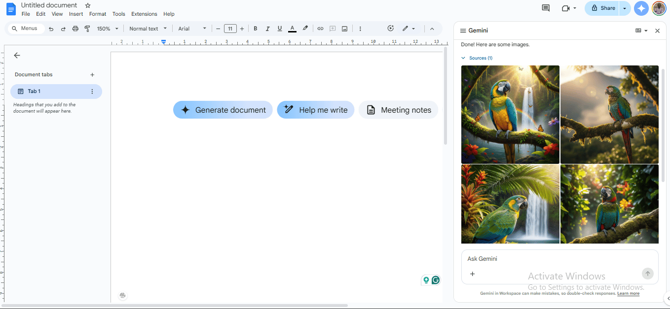 Google Workspace: Certain Google tools, like Docs and Slides, allow you to generate images within them. But this only works if you’re on the PRO version of Google’s Gemini model.