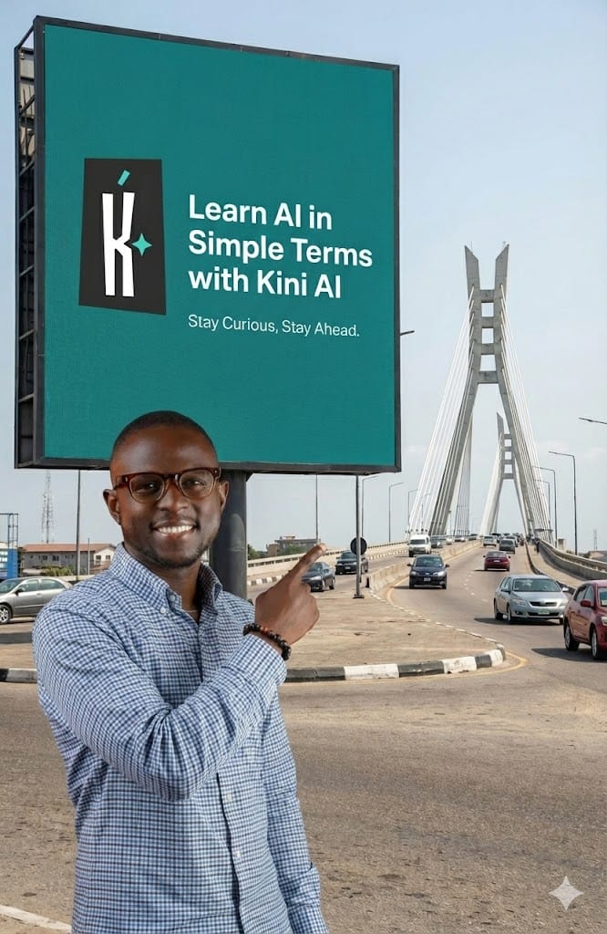 For example, let’s say we want to visualize a marketing campaign for us, Kini AI, before spending millions on real ad space. We want to see how our brand looks on a massive billboard at the Lekki-Ikoyi Link Bridge roundabout.