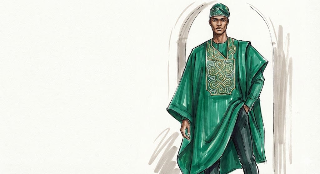 The Fashion Designer: You have an idea for a new Agbada style, but you can't draw well enough to show the tailor. You prompt: "Modern Agbada design, emerald green Aso-Oke, complex embroidery on the chest, worn by a tall man, fashion illustration style." The tailor sees exactly where the embroidery should go. No more "I thought you said..." arguments.